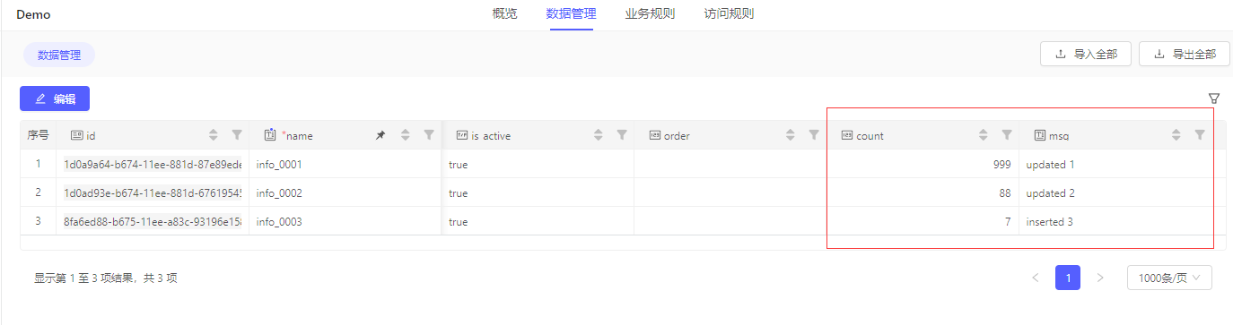 'msg': ['updated 1', 'updated 2', 'inserted 3']